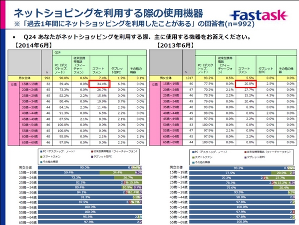 ジャストシステムは、セルフ型アンケートサービス「Fastask(ファストアスク)」を利用して、全国の15歳から69歳の男女1,100名を対象に、『モバイル&ソーシャルメディア月次定点調査(2014年6