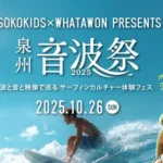 WHATAWON(ワタワン)とISOKOKIDSは、サーフカルチャーと音楽・映像が融合する新感覚フェス「泉州 音波祭 2025」を、10月26日に開催する。 WHATAWONは、antiquaが手がけ
