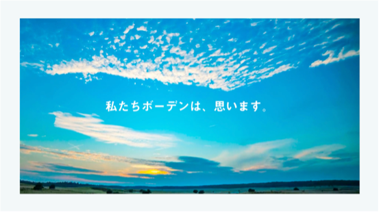 創業から25年以上にわたり、天然由来成分にこだわった生活用品を製造・販売してきたボーデンは、「やさしい今日を、未来へつなぐ。」を、新たな決意とともにミッションに掲げることとした。ボーデン社のコンセプトである、人々のやさしい今日を、未来へつなぐ。そんな思いを表現したブランドムービーに仕上がっている。