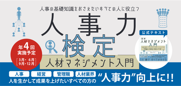 同社は、20年以上人事領域を専門分野としてきた実践経験を活かし、人事制度設計、組織開発支援、人事顧問、書籍などを通じて企業の人事支援をおこなっている。「人事力検定『人材マネジメント入門』」は、「人材マネジメント」に関して1冊のテキストをもとに体系的で網羅的な知識習得につながる検定。スピーディかつ効果的な学習・受検・証明をサポートする。同検定は、人事、経営、管理職、人材業界をはじめ、人を生かして成果を上げたいすべての人の人事力向上に役立ててもらうことを目的とし開発した。