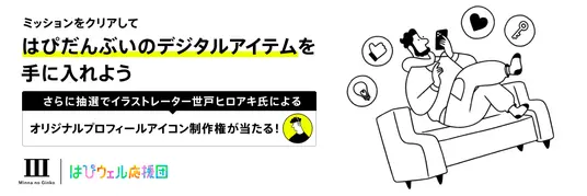 ミッション①チーム入会編では、「趣味活にこにこチーム」内のスタンプをすべて集めると、「デジタルカード(チームはぴウェルカード)」が必ずもらえる。さらに抽選で、選択したチームの応援団企業のアイテムを詰め合わせた「入会記念BOX(チーム入会記念ウェルネス応援BOX)」が当たるチャンスがある。ミッション②実践活動編では、ミッション①の達成に加えて、みんなの銀行のミッション②を達成すると、「人気イラストレーター世戸ヒロアキ氏によるオリジナルプロフィールアイコン制作権」を抽選で3名にプレゼントする。