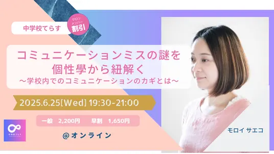 NIJINが運営する「中学校てらす」は、6月25日、「コミュニケーションミスの謎を個性學から紐解く~学校内でのコミュニケーションのカギとは~」を開催する。