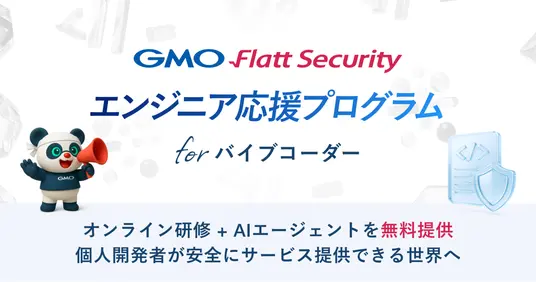 GMO Flatt Securityは、10月2日より、「GMO Flatt Security エンジニア応援プログラム for バイブコーダー」を開始する。