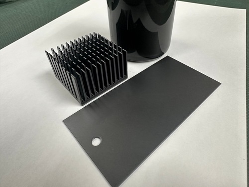 この問題に対して、同社では、放熱部材や筐体などに塗布することで放熱性を向上させることができる新規放熱塗料の開発を進めてきた。そして今般、グラフェンを含む複数の高熱伝導フィラーと高耐熱樹脂を使用。高い放熱性と高温環境下における塗布面への高い密着性、および耐久性を有する放熱塗料「ラジエックス」の開発に成功した。