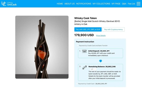 Gordon & MacPhail社は、世界最長熟成のシングルモルト「Glenlivet 85 Years Old – Artistry in Oak」をUniCask公式マーケットプレイスで販売している。購入から引き渡しまでのすべてがデジタル上で完結し、希望者は英国での保管(年額612GBP)も可能だ。ウイスキーが「飲むもの」から「持つ資産」へ。G&MとUniCaskの取り組みは、伝統とテクノロジーが融合した新しい価値創造の形となる。