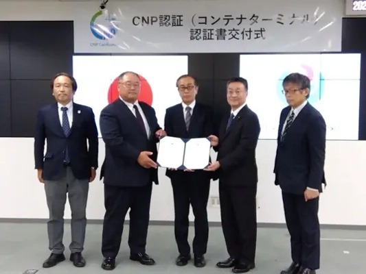 川崎港コンテナターミナル(川崎港CT)は、9月25日に「CNP認証(コンテナターミナル)」を取得し、10月9日に国土交通省関東地方整備局(横浜市)にて認証書の交付を受けた。
