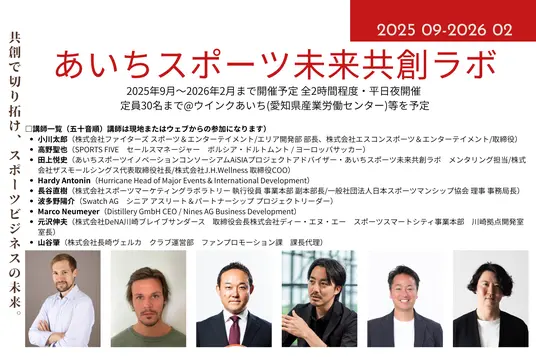 ザスモールシングスは、愛知県が主催するスポーツビジネス人材育成講座「あいちスポーツ未来共創ラボ」の第2回講座(単発回)を10月31日に開催し、参加者募集を開始する。