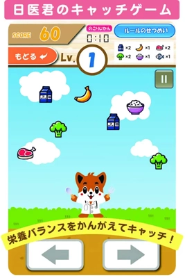 「日医君のわくわくミニゲーム!」はブラウザ上で遊べるゲームで、患者やその家族が知育や脳トレのゲームをプレイすることで、診察や調剤の待ち時間等を有効活用してもらうことを目的に製作したもの。ゲームはバランスの良い食事を摂ることの大切さを学ぶ「日医君のキャッチゲーム」と、脳トレ要素を取り入れた「日医君のくるりんゲーム」の2種類となっている。
