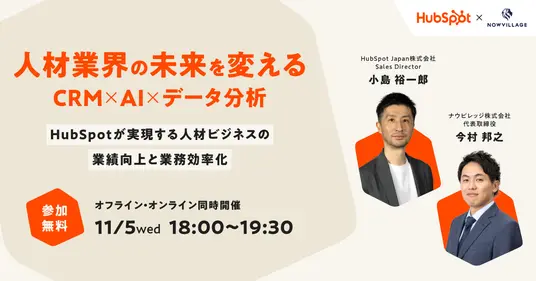HubSpot Japanとナウビレッジは、人材業界向けセミナー「人材業界の未来を変える ― CRM × AI × データ分析」を11月5日に開催する。