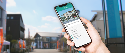モデルハウス見学アプリ「住まポ」は、各モデルハウスに設置したQRコードを読み込むだけで、すぐ見学開始。モデルハウスに入るたびに面倒なアンケートや個人情報を記入する必要はない。気に入ったモデルハウスへの資料請求や問い合わせも、アプリの資料請求画面からモデルハウスを選ぶだけ。さらに、見学したモデルハウスの新しい分譲地の情報やお得なキャンペーンなどの情報はアプリのお知らせに届く。わざわざいろいろなサイトを探さずとも最新の情報を取得することができる。