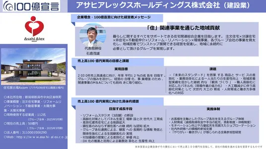 アサヒアレックスホールディングスは、新潟県内の住宅建設業として初めて「100億円宣言」を発表した。