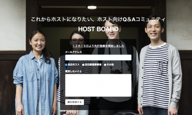 トーキョーサンマルナナは、民泊業界のホスト同士や民泊関連事業者との質疑応答、情報共有を目的としたコミュニティーサイト「HOST BOARD(ホストボード)」を、2017年1月に正式リリースする。またそ