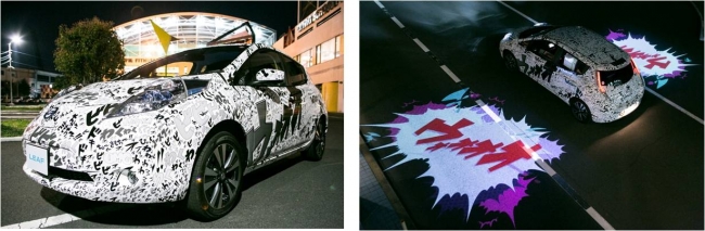 日産自動車は、電気自動車「日産リーフ」の販売開始5周年を記念し、EV(電気自動車)の運転感覚をドライバーの脳波から自動的に言語化し、車両周辺に投影する機能を備えた車両を制作した。 この企画は、「日産リ