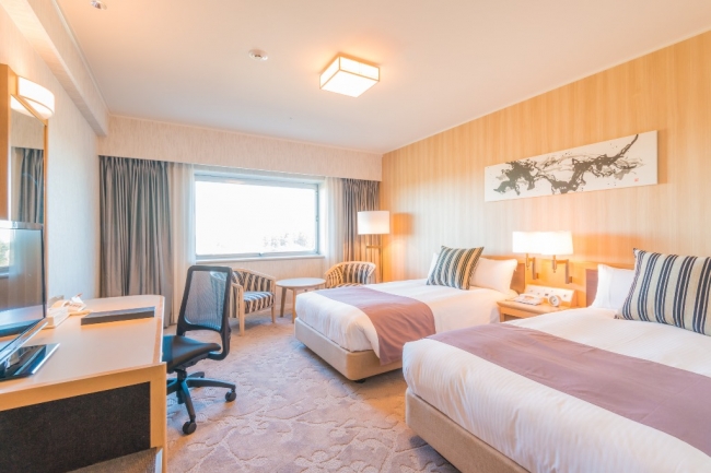 ホテル日航成田は、新館10階、9階、8階客室フロア全56室のリニューアル工事が完成し、1月からエグセクティブルームとして販売を開始した。 デザイン担当は髙木雄一郎デザイン事務所。今後増加が予想される訪