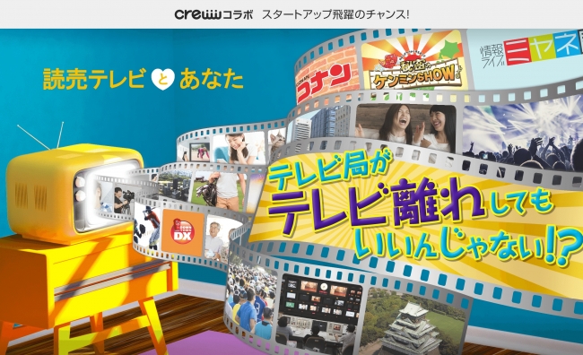 讀賣テレビ放送とCrewwは、「テレビ局がテレビ離れしてもいいんじゃない?」をテーマに、読売テレビとスタートアップとのオープンイノベーションプログラムを開始する。crewwはこの取り組みを過去に40社