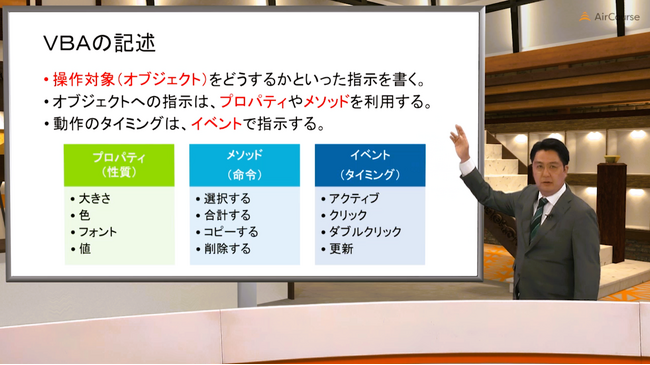 KIYOラーニングは、「はじめてでも安心!Excelマクロ&VBA基礎」をリリースする。 「AirCourse」は、企業向け社員教育eラーニングサービス。社員教育でニーズの高い動画eラーニングコース7