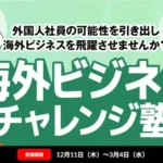 東京都中小企業振興公社は、外国人社員を活用した中小企業の海外事業展開を支援する実践型プログラム「海外ビジネス・チャレンジ塾(外国人向け実践コース)」を、12月11日より開講する。 近年、外国人社員を雇