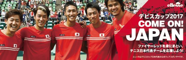 「エレッセ」は、2月3日~5日に有明コロシアムで開催される「デビスカップ」の日本代表チーム公式ウエアサプライヤーとしてオフィシャルウエアを提供。1月18日より「COME ON!JAPANファイヤーレッ