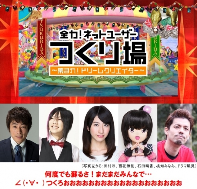 2013年10月~2014年3月までテレビ東京で放送された番組「全力!ネットユーザー「つくり場」」が、ニコニコ公式生放送で限定復活する。 「つくり場」は、ネット生放送を通じて視聴者と協力しながら全力で