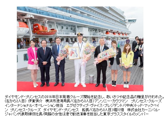 プリンセス・クルーズは、4年目の日本発着クルーズ・シーズン開始にあたり、横浜港大さん橋の国際客船ターミナルと、停泊したのダイヤモンド・プリンセス船内で、4月25日(月)、同船の2016年日本発着クルー