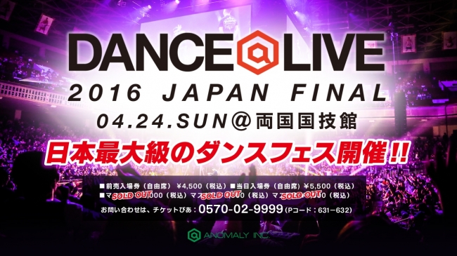 アノマリーは、4月24日にストリートダンスバトルイベント「DANCE@LIVE 2016 JAPAN FINAL」を両国国技館にて開催する。11年目となる同大会は、日本をはじめアジア諸国からの参加もみ