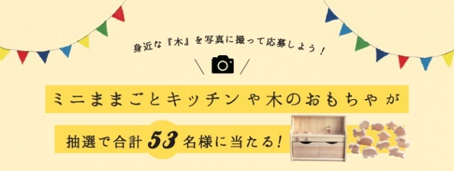 斉藤林業は、10月8日の「木の日」と10月の「木づかい推進月間」を記念し、10月1日~10月31日の期間、「ミニままごとキッチン」と「木のおもちゃ」をプレゼントするキャンペーンを実施する。 同社では2