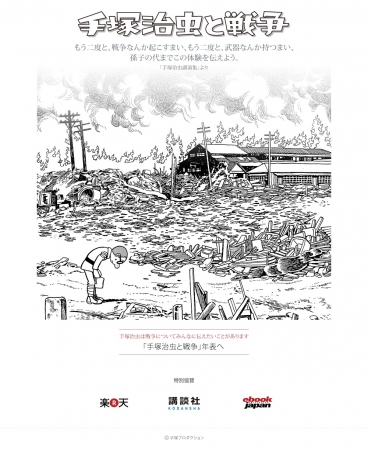 「eBookJapan」は、手塚プロダクションによる戦後70年企画「手塚治虫と戦争」に特別協賛し、あわせて特設ページを公開する。 1928年生まれの手塚治虫は、幼少期から戦争の中で成長。16才で軍需工