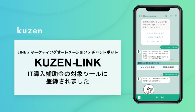 コンシェルジュが提供するチャットマーケティングオートメーションツール「KUZEN-LINK」が、「IT導入補助金2020 特別枠(C類型)」の対象ツールに認定された。 「IT導入補助金2020」は、中