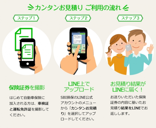 SBI損害保険は、12月18日よりコミュニケーションアプリ「LINE」の公式アカウントを開設。LINE公式アカウントを通じ、契約中の自動車保険証券や車検証等をアップロードするだけで同条件の見積り結果を