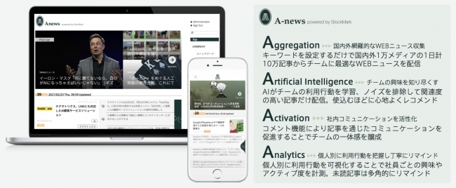 ストックマークは、企業・チームの情報収集・ナレッジシェアを効率化するWEBニュースクリッピングサービス「Anews」の提供を、4月24日より本格的に開始する。 「Anews」は、最先端のAIが社員の利
