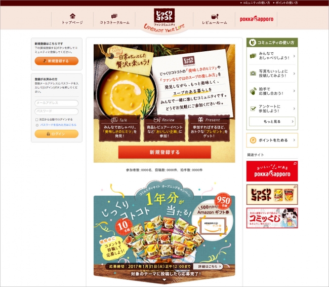 ポッカサッポロフード&ビバレッジとクオンは、クオンが提供するコミュニティマーケティング・システム「Beach」にて、公式コミュニティサイト「じっくりコトコト ファンコミュニティ」をオープンする