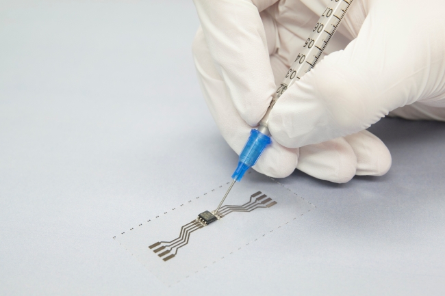プリンテッド・エレクトロニクス技術を提供するAgICは、常温硬化する一液式導電性接着剤「ノーソルダー」を発売した。 今回発売する導電性接着剤は、金属を侵食しないだけでなく、ハンダと違い加熱せずとも常温