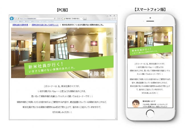 アドバンスクリエイトが運営する国内最大級の保険選びサイト「保険市場」は、Q&A形式の新しいコラム「新米社員が行く!いまさら聞けない保険のあれこれ。」の掲載を開始した。 連載コラムは、新米社員のマナブく