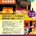 吉野町市民プラザは、11月24日「吉野町市民プラザ若手落語会 桂鷹治・春風亭かけ橋」の開催にあたり、中学生・高校生を対象とした職業体験「吉野町市民プラザ 落語会de職業体験」を開催する。 横浜市吉野町