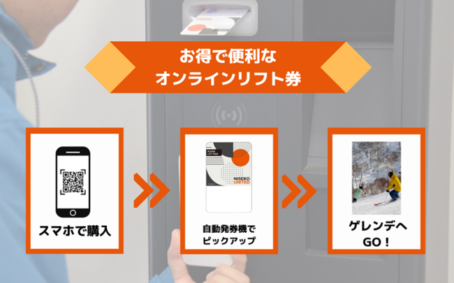 ニセコ東急グラン・ヒラフでは、スキー場の窓口に並ぶことなく、自動発券機でリフト券を受け取れるオンラインリフト券を、11月1日よりオンラインショップにて販売開始する。 オンラインリフト券は利用者のスマー