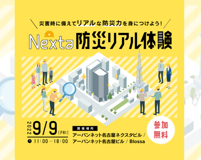NTT都市開発は愛知県名古屋市東桜一丁目に位置するアーバンネット名古屋ネクスタビル、アーバンネット名古屋ビル及びBlossaにおけるエリアマネジメント活動の一環として、地域の防災意識を高める防災イベン