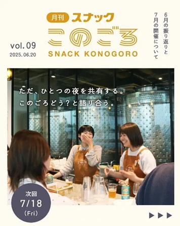 フェリシモが展開する、20代社会人の日常に寄り添う、今を生きる僕らのためのおおらかなメディア「このごろ(R)」は、みなと神戸の隠れ家的スナック一夜限りの「スナックこのごろ」を7月18日18時~21時に