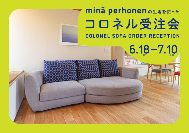 スタイルは、同社運営店舗「三島家具」で人気No.1のソファ「コロネル」にミナペルホネンtambourineを張った別注モデルを、6月18日より三島家具オンラインショップにて期間限定販売する。ソファの製