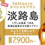 フォーティーズは5月31日迄延長になった「ふるさと応援!ひょうごを旅しようキャンペーン」の対象商品として「淡路島うずしお温泉うめ丸」or「洲本温泉海月館」の食事と入浴往復バスセットになったパックツアー