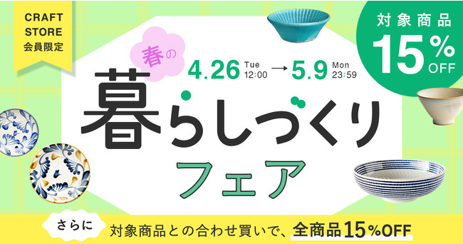 ニューワールドは、4月26日~5月9日の間「CRAFT STORE」サイト内にて「春の暮らしづくりフェア」を開催する。対象商品との同時購入で全品15%が適用される。 ニューワールドは、日本のものづくり