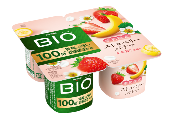 ダノンジャパンは、100倍胃酸に強く生きたまま腸まで届くBE80菌を配合した「ダノンビオ」より、2022年新春の季節限定フレーバーとして、「ダノンビオストロベリーバナナ」を発売。1月6日より、全国のス