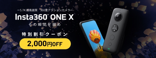 セキドでは、簡単な操作でその空間全ての映像を撮影できる 5.7K 360度超高画質撮影対応アクションカメラ「Insta360 ONE X」が2000円OFFとなる「Insta360 ONE X 特別割