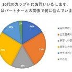 日本マーケティングリサーチ機構は、男女1100名を対象にインターネットアンケート形式で「パートナーとの関係に関する一般調査」を実施した。 まず20代カップルに、パートナーとの関係で悩んでいることを調査
