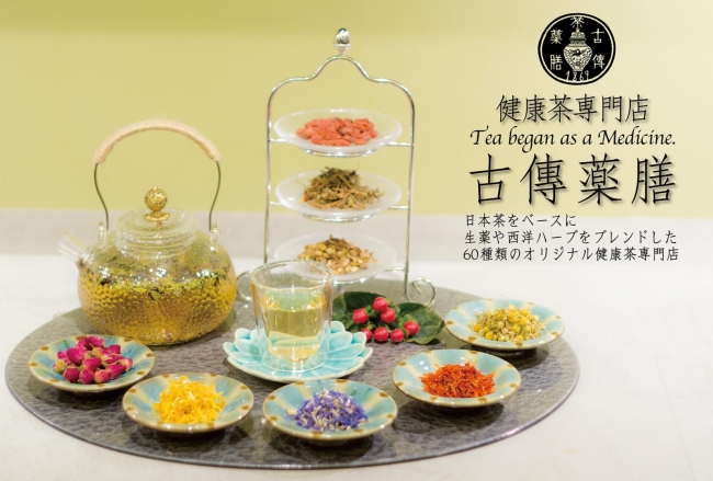 宇治園は、1月、創業150周年を機に、日本茶が薬として飲まれていた時代への原点回帰として、日本茶をベースとした健康茶専門店「古傳薬膳 」を宇治園本店1階にオープンした。 「Tea began as a