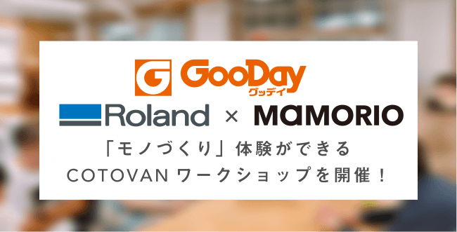MAMORIOは、グッデイと、ローランド ディー.ジー.との3社合同でモノづくりを体験できるワークショップイベントを開催。Gooday一部店舗の駐車場にて、UVプリンター・箔転写機を載せたCOTOVA