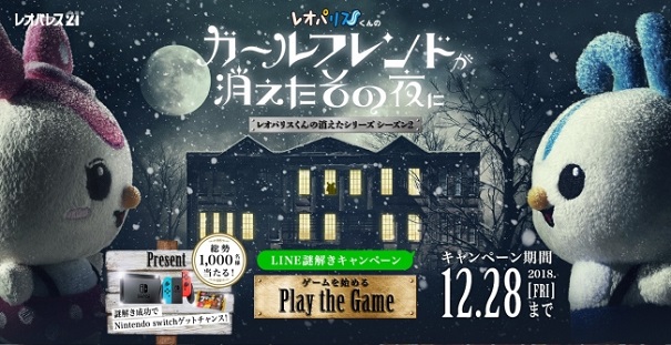 レオパレス21は、「LINE」上で行う謎解きゲーム「レオパリスくんのガールフレンドが消えたその夜に。」の全問正解者から抽選で豪華賞品が当たるキャンペーンを12月17日より開催している。 公開する謎解き
