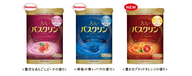 バスクリンは、大人を虜にする湯色と香りで優雅なバスタイムを演出する「大人のバスクリン」に「アロマ粒エッセンス(香料成分)」を新配合し香りを華やかに演出するとともに新アイテム「豊かなブラッドオレンジの香