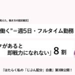 労働力不足問題解決のリーディングカンパニー「うるる」は、女性の働き方と生活のバランスに関するプロジェクト『はたらく私の「じぶん配分」白書』のコンテンツ第3弾を公開した。 それによると、「子育てが落ち着