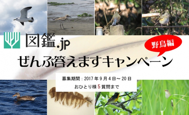 山と溪谷社は、生物図鑑読み放題サイト「図鑑.jp」で、期間限定の「ぜんぶ答えますキャンペーン野鳥編」を開始する。9月4日(月)~20日(水)までの17日間に投稿された野鳥写真に対して、専門家と図鑑.j