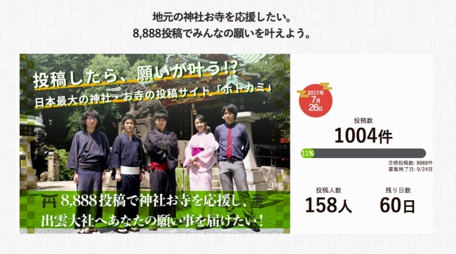 DO THE SAMURAIが運営する、日本最大の神社・お寺の投稿サイト「ホトカミ」は、7月27日より、クラウドポスティングという企画を開始する。 クラウドポスティングとは、お金ではなく「投稿」によっ